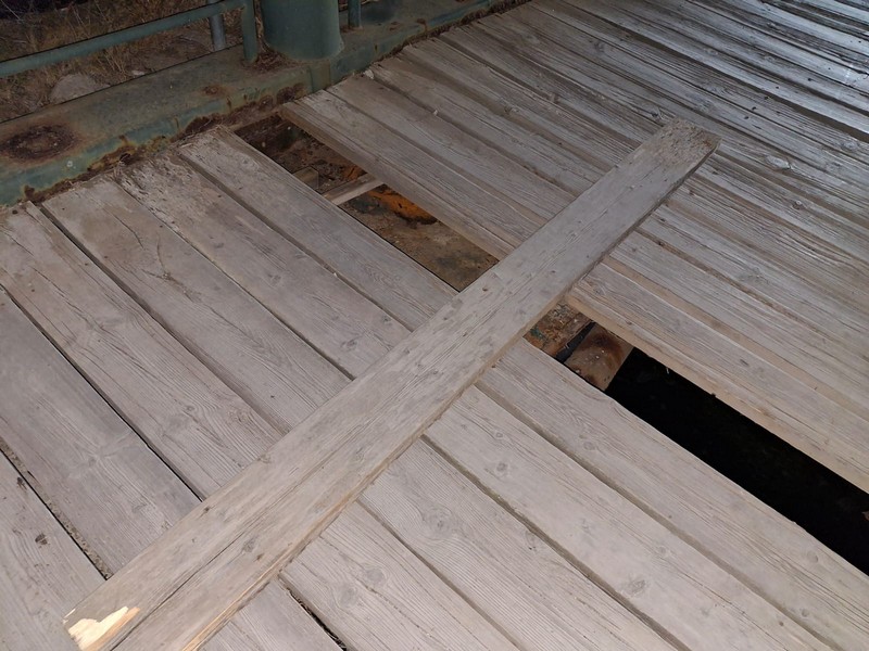 Ξεπερνώντας το αρχικό shock για όλη την οικογένεια και δίνοντάς της, τις πρώτες βοήθειες στον τόπο του συμβάντος, επειδή ακόμη δεν γνώριζα, τι ακριβώς έχει συμβεί, επέστρεψα στο σημείο όπου είχε πέσει, για να ανακαλύψω προς τεράστιά μου έκπληξη, πως μια ολόκληρη σανίδα του ξύλινου δαπέδου της πεζογέφυρας έλειπε, και από κάτω έχασκε το κενό. Πήρα απευθείας για τεκμηρίωση τη φωτογραφία που σας επισυνάπτω, στην οποία φαίνεται πως στην ουσία λείπει εντελώς τμήμα του δαπέδου, και η σανίδα που τοποθετήσαμε προσωρινά με τη βοήθεια των διερχομένων, που με βοήθησαν με το ατύχημα, μπήκε αμέσως μετά το ατύχημα κάθετα πάνω από το χάσμα, ώστε να προειδοποιήσει προσωρινά πεζούς και ποδηλάτες για τον κίνδυνο.