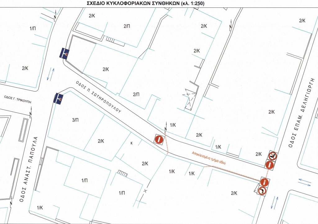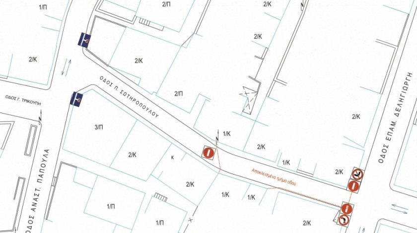 - Σε τμήμα της οδού Σωτηροπούλου, μεταξύ των οδών Παπούλα και Δεληγιώργη.