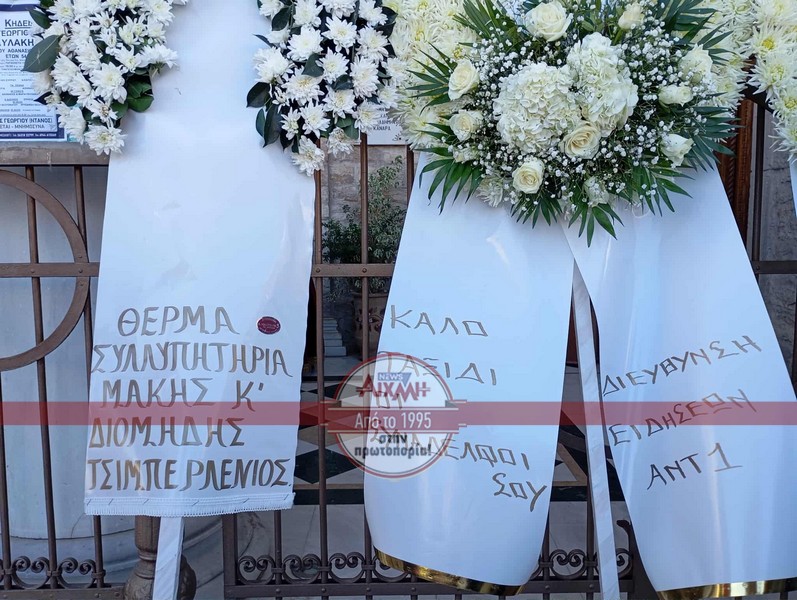 Στεφάνια εστάλησαν από την οικογένεια του διευθύνοντος συμβούλου του Ομίλου ΑΝΤ1 Θοδωρή Κυριακού, από συναδέλφους του, συγγενείς και φίλους του.