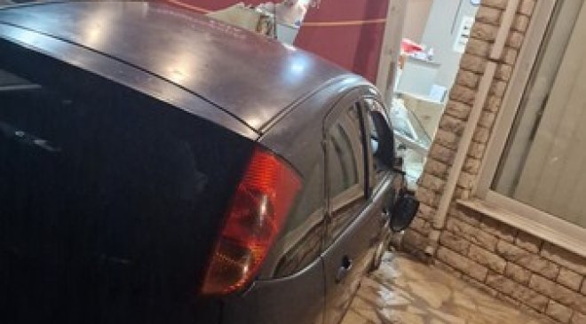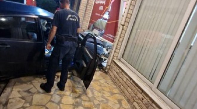 Εικάζεται ότι το αυτοκίνητο προσέκρουσε με ταχύτητα καθώς γκρέμισε την μάντρα εξωτερικά του καταστήματος και στην συνέχεια έπεσε στην τζαμαρία η οποία φυσικά έσπασε.