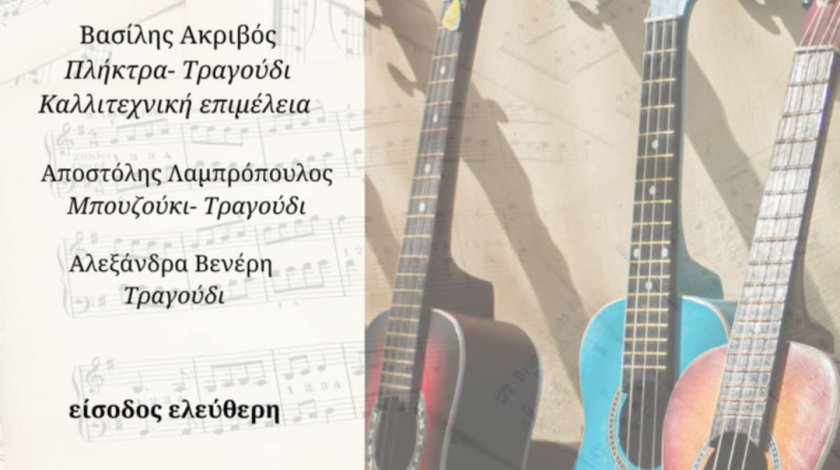 Στην μουσική εκδήλωση συμμετέχουν, οι: Akrivοs Band, Βασίλης Ακριβός (Πλήκτρα, τραγούδι και καλλιτεχνική επιμέλεια), Αποστόλης Λαμπρόπουλος (Μπουζούκι, τραγούδι) και Αλεξάνδρα Βενέρη (Τραγούδι)