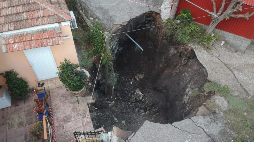Η καθίζηση δημιούργησε κρατήρα με διαστάσεις 6 μέτρα βάθος και 6 μέτρα πλάτος και όπως φαίνεται και από τις εικόνες είναι σαν να έχει ανοίξει η γη.