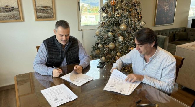 Υπογράφηκε σήμερα, Δευτέρα 8 Δεκεμβρίου 2025, η σύμβαση για την υλοποίηση του έργου ηλεκτροφωτισμού του Δημοτικού Γηπέδου Ποδοσφαίρου στο Δ.Α.Κ. Μεσολογγίου, καθώς και του βοηθητικού προπονητικού γηπέδου, μεταξύ του Δημάρχου Ιεράς Πόλεως Μεσολογγίου, Σπύρου Διαμαντόπουλου, και του εκπροσώπου της αναδόχου εταιρείας.