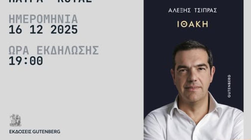 O Aλέξης Τσίπρας παρουσιάζει την “Ιθάκη” στην Πάτρα (16/12) 10 Δεκεμβρίου 2025 AgrinioDaily Παρουσίαση της “Ιθάκης” στην Πάτρα. Tρίτη 16.12.25 στις 19:00 Royal, Ακτή Δυμαίων 53