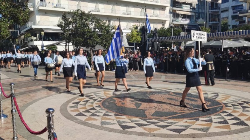 12.00: Παρέλαση προ των επισήμων στην πλατεία Τριών Συμμάχων των Σωματείων, Οργανώσεων, Αντιπροσωπειών του Πανεπιστημίου Πατρών, ΤΕΙ, μαθητών, πολεμιστών Εθνικής Αντίστασης, ΕΕΣ, Τμημάτων Στρατού.