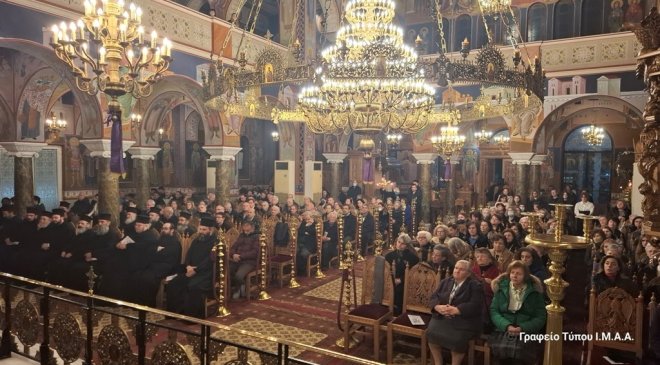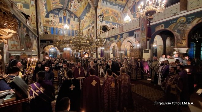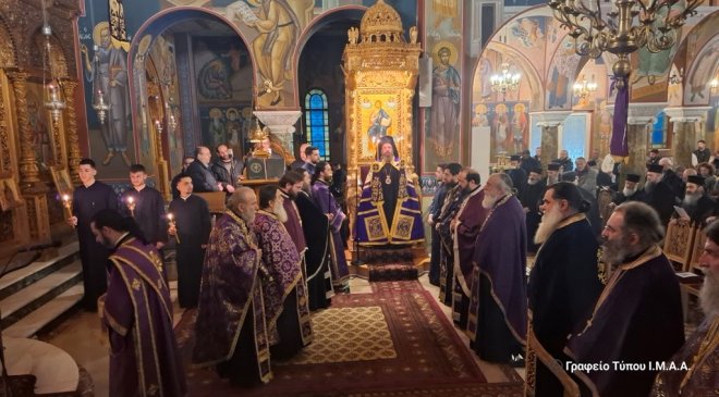 Μέσα σε κλίμα κατάνυξης τελέσθηκε η Ακολουθία του Α’ Κατανυκτικού Εσπερινού το απόγευμα της Κυριακής της Τυρινής, 2 Μαρτίου 2025 στην Ιερά Μητρόπολη Αιτωλίας και Ακαρνανίας.