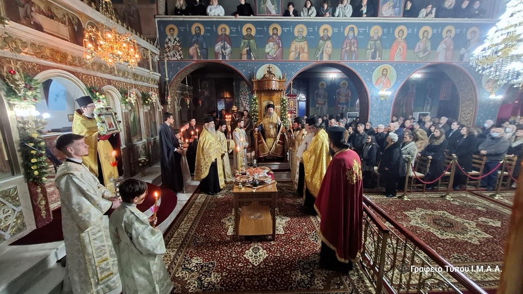 Στην ακολουθία του Εσπερινού που τελέσθηκε την παραμονή της εορτής, Κυριακή 9 Φεβρουαρίου 2025 χοροστάτησε ο Σεβασμιώτατος Μητροπολίτης Αιτωλίας και Ακαρνανίας κ. Δαμασκηνός.