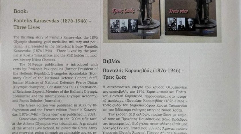 Στο τελευταίο τεύχος της περιοδικής έκδοσης Journal, του επίσημου περιοδικού της Διεθνούς Ολυμπιακής Ακαδημίας (ΔΟΑ) που κυκλοφορεί σε τρεις γλώσσες (ελληνικά, γαλλικά, αγγλικά) φιλοξενείται στη στήλη των παρουσιάσεων βιβλίων η έκδοση του ιστορικού αφιερώματος των Κωστή Τσιακανίκα και Νίκου Χούτα στον Ολυμπιονίκη Παντελή Καρασεβδά, την σπουδαία στρατιωτική και πολιτική του δράση.