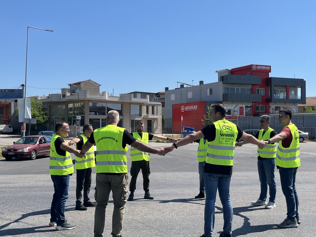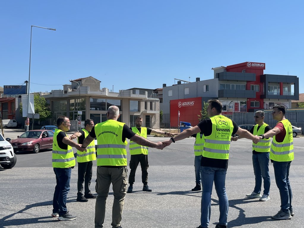 Προηγήθηκε προ συγκέντρωση στα γραφεία της λέσχης στον παλιό σταθμό του τρένου ακολούθησε μοτοπορεία μέσα στη πόλη του Αγρινίου με τελικό προορισμό το συγκεκριμένο σημείο του κόμβου στην Εθνική Οδό.