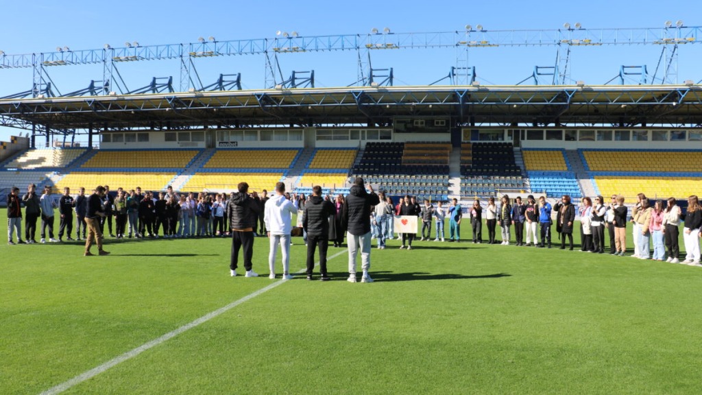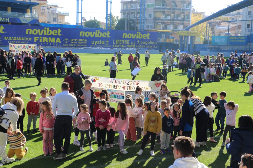 435 μαθητές, 112 εκπαιδευτικοί, 15 σχολικές μονάδες τυπικής εκπαίδευσης, 4 σχολικές μονάδες ειδικής αγωγής και 8 αθλητές και αθλήτριες του Παναιτωλικού δημιούργησαν μια αλυσίδα συμπερίληψης. Μαζί, έμαθαν, δημιούργησαν και έστειλαν το μήνυμα “ΟΛΟΙ ΜΑΖΙ ΜΠΟΡΟΥΜΕ ΝΑ ΕΠΙΚΟΙΝΩΝΗΣΟΥΜΕ ΜΕ ΔΙΑΦΟΡΕΤΙΚΟΥΣ ΤΡΟΠΟΥΣ” στη νοηματική γλώσσα, υπενθυμίζοντάς μας ότι ο κόσμος γίνεται καλύτερος όταν είναι προσβάσιμος και δίκαιος για όλους.