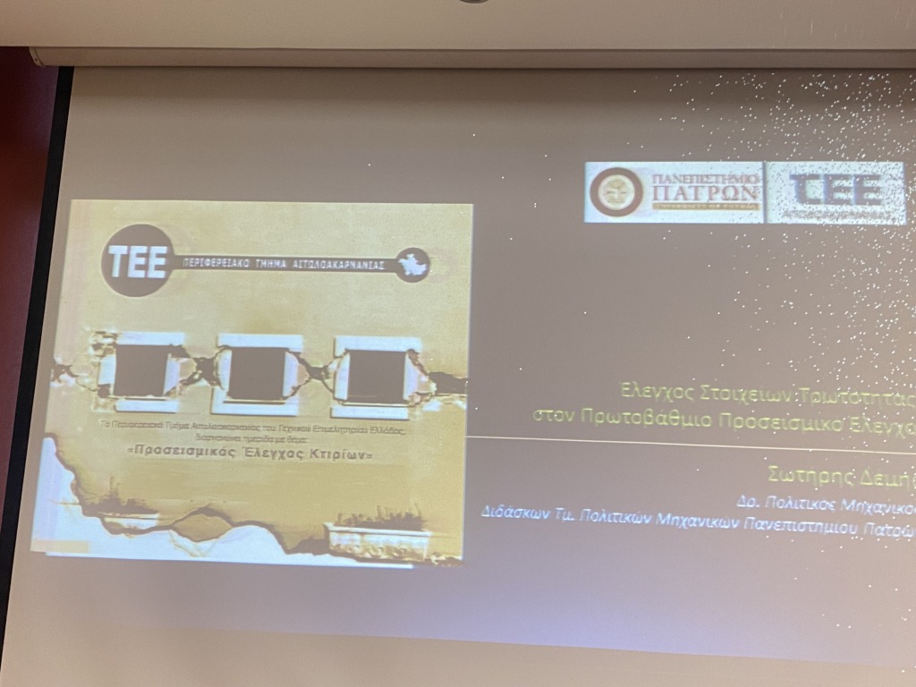 Το Τεχνικό Επιμελητήριο Αιτωλοακαρνανίας  σε συνεργασία με τον Οργανισμό Αντισεισμικού Σχεδιασμού & Προστασίας και τον Σύλλογο