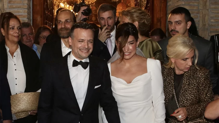 Εν μέσω χειροκροτημάτων η νύφη έφτασε λίγο μετά τις 19:10 στην εκκλησία, έλαβε την ανθοδέσμη από τον αγαπημένο της Χάρη Δούκα και ανέβηκαν τα σκαλιά της εκκλησίας. Λίγο μετά τις 20:00 η τελετή ολοκληρώθηκε με το νεόνυμφο ζευγάρι να βγαίνει σε ένα κλίμα μεγάλης ευθυμίας έξω από την εκκλησία.