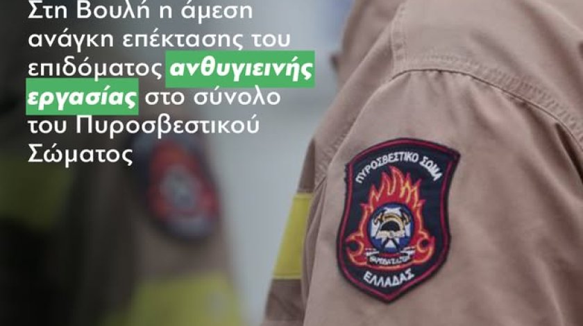 Μαζί με τους συναδέλφους μου στο ΠΑΣΟΚ – Κίνημα Αλλαγής συνυπέγραψα ερώτηση προς τον Υπουργό Κλιματικής Κρίσης και Πολιτικής Προστασίας στη Βουλή, επισημαίνοντας την άμεση ανάγκη να επεκταθεί το επίδομα ανθυγιεινής εργασίας σε όλο το προσωπικό του Πυροσβεστικού Σώματος.
