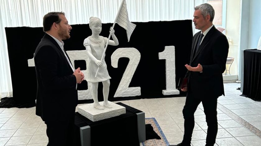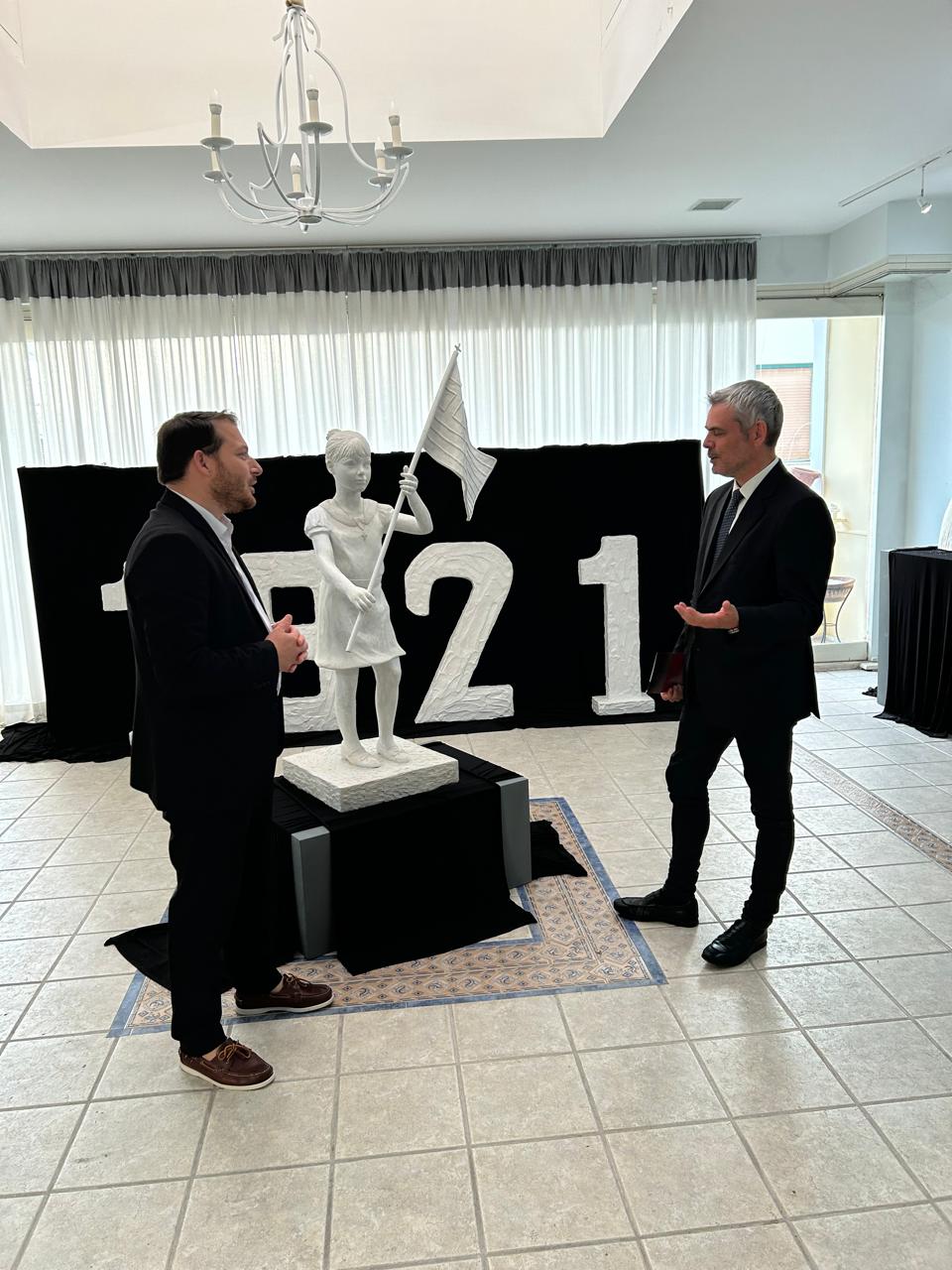 Ο κύριος Καραγκούνης εξέφρασε στον καλλιτέχνη Βαγγέλη Τύμπα τον απεριόριστο σεβασμό και θαυμασμό του για την πορεία και το έργο του. Ένα έργο που αναμένεται να ενταθεί ακόμα περισσότερο ενόψει και του εορτασμού των 200 ετών από την ηρωική έξοδο του Μεσολογγίου.