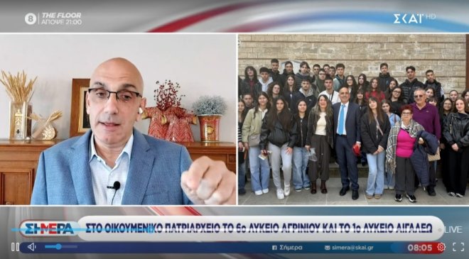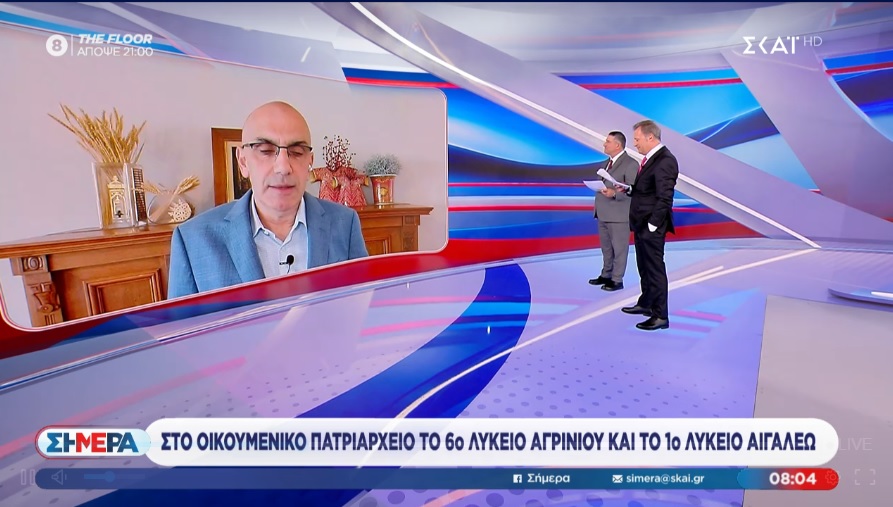 Πριν λίγο η επίσκεψη του 6ου Γενικού Λυκείου Αγρινίου “Αρχιμανδρίτης Απόστολος Φαφούτης” στο Οικουμενικό Πατριαρχείο μεταδόθηκε στον ΣΚΑΙ. Δείτε στην ώρα 08:05 της εκπομπής “Σήμερα” https://www.skai.gr/tv/live