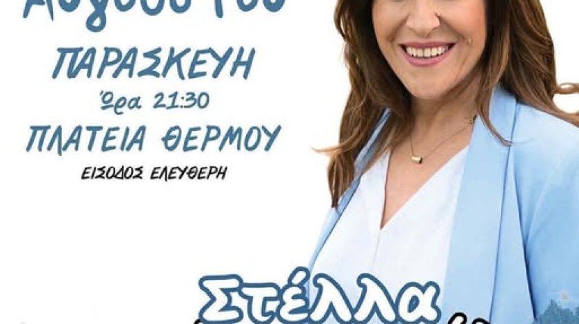 Μουσική εκδήλωση με τη γνήσια εκπρόσωπο του νησιώτικου τραγουδιού ΣΤΕΛΛΑ ΚΟΝΙΤΟΠΟΥΛΟΥ θα διεξαχθεί απόψε στην πλατεία του Θέρμου στο πλαίσιο των «Εορτών Κοσμά Αιτωλού 2025» από την Περιφέρεια Δυτικής Ελλάδας σε συνδιοργάνωση με τον Δήμο Θέρμου!!!