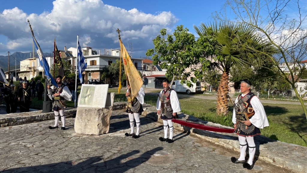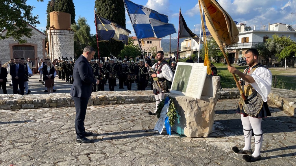 Μετά το τρισάγιο, χαιρετισμό απεύθυνε ο Πρόεδρος της Διεθνούς Αδελφότητα Απογόνων των Ελεύθερων Πολιορκημένων Ιωάννης Μακρής, ενώ στεφάνι κατέθεσε στο μνημείο ο Δήμαρχος Ιερής Πόλης Μεσολογγίου Σπύρος Διαμαντόπουλος και ο Πρόεδρος των «Αη-Συμιωτών».