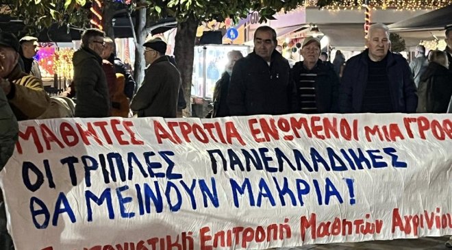 «Ακρίβεια και φόροι, δε φτάνει ο μισθός, θηλιά για το λαό ο προϋπολογισμός» φώναξαν απόψε(Τρίτη 16/12/2025) από την πλατεία Δημοκρατίας του Αγρινίου εργαζόμενοι, αυτοαπασχολούμενοι, νέοι, γυναίκες και συνταξιούχοι και κυρίως αγρότες και κτηνοτρόφοι.