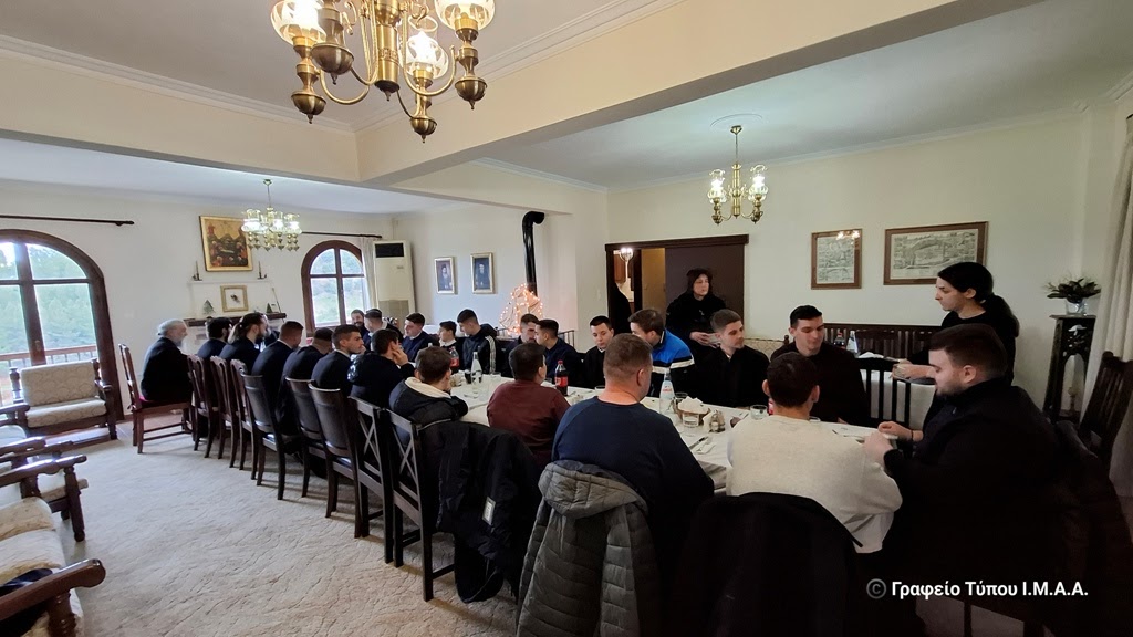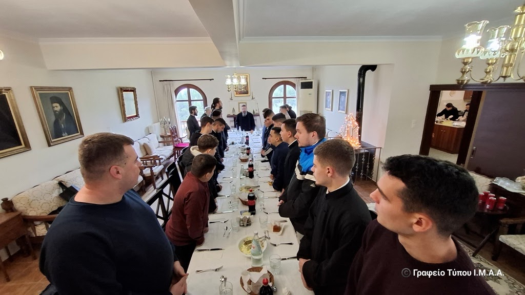 Αμέσως μετά ο Σεβασμιώτατος Μητροπολίτης Αιτωλίας και Ακαρνανίας κ. Δαμασκηνός ευλόγησε την βασιλόπιτα του Τομέα και ακολούθησε η παράθεση γεύματος από την φιλόξενη Αδελφότητα της Ιεράς Μονής.