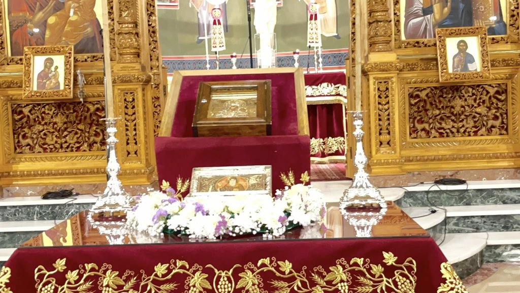 Κατά την διάρκεια της συνάξεως τέθηκε προς προσκύνηση και αγιασμό των πιστών απότμημα ιερού λειψάνου του Αγίου Ανθίμου.