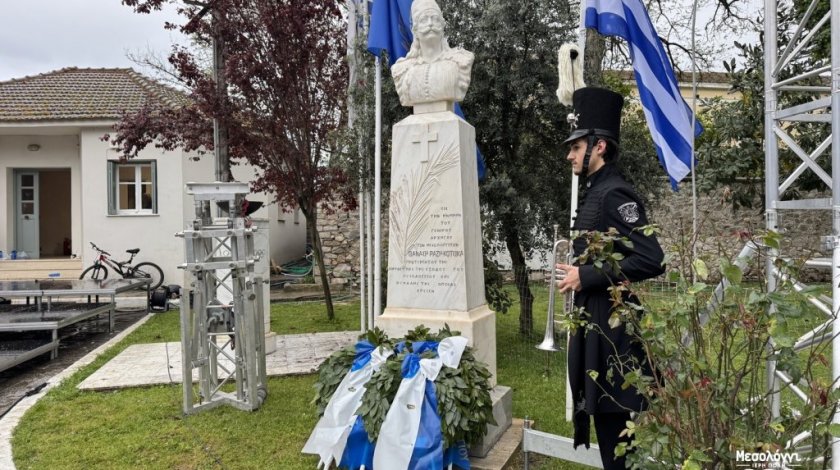 Σε κλίμα βαθιάς συγκίνησης πραγματοποιήθηκε χθες, Τετάρτη 1 Απριλίου 2026, η κατάθεση στεφάνων στην προτομή του Αρχηγού των Μεσολογγιτών, Αθανασίου Ραζηκότσικα. Παρά τη ματαίωση της προγραμματισμένης εκδήλωσης για την «Ημέρα του Αρχηγού» λόγω των προβλεπόμενων δυσμενών καιρικών συνθηκών, ο Σύλλογος «Οι Φίλοι της Μουσικής Διονύσιος Σολωμός» και το Ιστορικό Μουσείο «Διέξοδος» τήρησαν το καθιερωμένο ραντεβού με την ιστορία, αποδίδοντας τον ελάχιστο φόρο τιμής στον μεγάλο αγωνιστή.