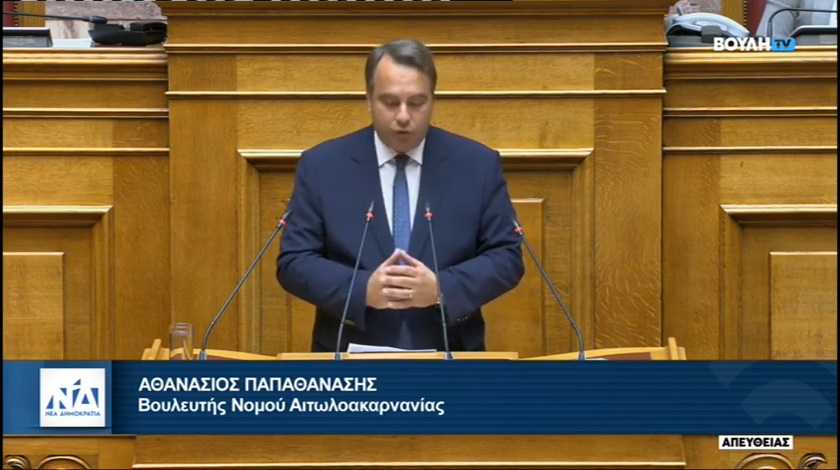 Ο Βουλευτής Αιτωλοακαρνανίας της Νέας Δημοκρατίας, Θανάσης Παπαθανάσης, τοποθετήθηκε από το βήμα της Βουλής κατά τη συζήτηση του νέου νομοσχεδίου του Υπουργείου Εργασίας και Κοινωνικής Ασφάλισης, υπογραμμίζοντας ότι πρόκειται για μια ουσιαστική μεταρρύθμιση που «αγγίζει την καρδιά της κοινωνίας – τον κόσμο της εργασίας».