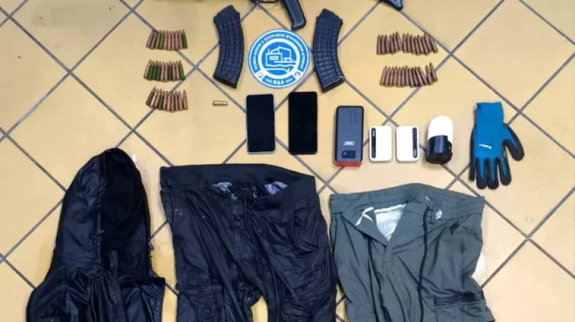 Σε έρευνες που πραγματοποιήθηκαν στην ανωτέρω οικία και στη λίμνη Τριχωνίδας βρέθηκε από τους αστυνομικούς και κατασχέθηκε ένα πολεμικό τυφέκιο, με σπαστό κοντάκι, με δυο γεμιστήρες, δεμένους με μονωτική ταινία, που έφεραν -57- φυσίγγια, καθώς και είδη ρουχισμού.