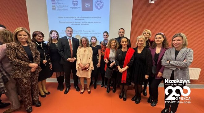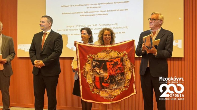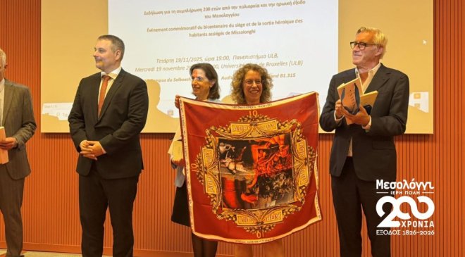Η Ιερή Πόλη του Μεσολογγίου έλαμψε για άλλη μια φορά στο εξωτερικό, με την εκδήλωση που πραγματοποιήθηκε για τη Διακοσιοστή Επέτειο από την Πολιορκία και την Ηρωική Έξοδο στις Βρυξέλλες, στο Πανεπιστήμιο ULB (Université Libre de Bruxelles) την Τετάρτη, 19 Νοεμβρίου 2025. Ένας μοναδικός συνδυασμός βίντεο και μουσικής, συγκινητικών ομιλιών και η παρουσίαση του επετειακού μαντηλιού και της επετειακής γραβάτας, αποτύπωσαν με απόλυτη επιτυχία την ιστορική σημασία και τον πολιτισμικό αντίκτυπο της Εξόδου.