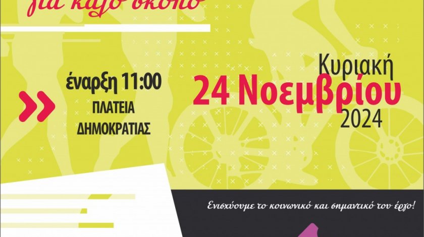 Tην Κυριακή 24 Νοεμβρίου 2024 στις 11 π.μ., η Γυμναστική Εταιρεία Αγρινίου, η Περιφέρεια Δυτικής Ελλάδας και ο Δήμος Αγρινίου, διοργανώνουν το «Τρέχω, βαδίζω, ποδηλατώ στην πόλη μου», με σημείο εκκίνησης και τερματισμού την Πλατεία Δημοκρατίας Αγρινίου. Πρόκειται, για αγώνες (τρέξιμο, βάδισμα, ποδηλασία) που δεν έχουν συναγωνιστικό χαρακτήρα, ενώ δεν απαιτείται κάποιο κόστος συμμετοχής σε αυτούς.