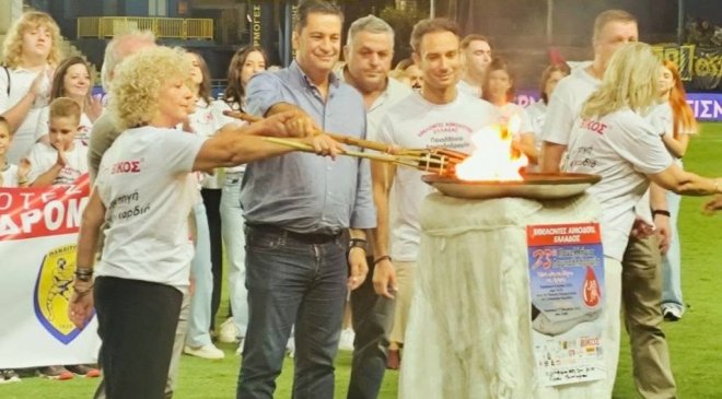 Στο ημίχρονο του αγώνα ΠΑΝΑΙΤΩΛΙΚΟΣ – ΒΟΛΟΣ οι Λαμπαδηδρόμοι μπήκαν στον αγωνιστικό χώρο, άναψαν τον βωμό, στέλνοντας παντού το μήνυμα του Εθελοντισμού και της αλληλεγγύης.