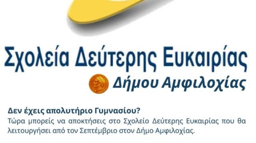 Ξεκίνησαν για το νέο σχολικό έτος οι εγγραφές στο Σχολείο Δεύτερης Ευκαιρίας του Δήμου Αμφιλοχίας, το οποίο ιδρύεται με σκοπό να προσφέρει μια δεύτερη ευκαιρία σε συμπολίτες μας στην εκπαίδευση, την κοινωνία και την εργασία.