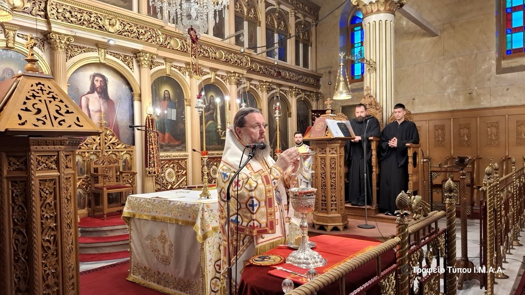 Κατά την Θεία Λειτουργία, που τελέστηκε στον σολέα του Ναού, ο Σεβασμιώτατος επεξηγούσε με απλά λόγια τα τελούμενα, τα βασικά σημεία και τους συμβολισμούς του Μυστηρίου της Θείας Ευχαριστίας, με σκοπό οι μαθητές να μπορέσουν να συμμετάσχουν καλύτερα και να βιώσουν το ιερό Μυστήριο.