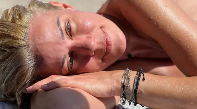 Η παρουσιάστρια ανέβασε μερικά στιγμιότυπα από την εξόρμησή της στο νησί, μέσω Instagram και σε μία από τις φωτογραφίες της, εμφανίζεται η ίδια να ποζάρει στον φακό, topless. Χωρίς να φοράει το πάνω μέρος του μαγιό της και δίχως μακιγιάζ, η Ζέτα Μακρυπούλια χαμογελάει στην κάμερα ξαπλωμένη στο πλάι ενώ απολαμβάνει την ηλιοθεραπεία της.